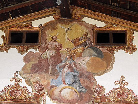 Auf dem Weg von der Bahn dorthin zeugten einige prächtige Fachwerkhäuser im Ort vom ehemaligen Reichtum. Dazu gehören eindrucksvolle Beispiele der Lüftlmalerei.
